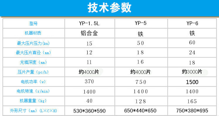 只装一付冲模,物料的充填深度,压片厚度均可调节,能适应制药行业压制各种中、西药征剂的要求和其它行业压制
